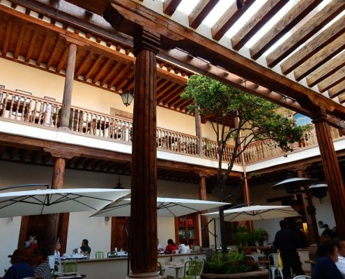 Patzcuaro is quite diverse in that besides the pure Mexican chaos one can enjoy the experience of the colonial flare it offers. The various plazas are surrounded by quaint hotels and restaurants with wonderful terraces and shaded courtyards where you can escape the afternoon heat. It was a real treat to simply go from one building to the next and enjoy the spectacular architecture. A highlight of the city is the library which we also decided to visit. The inner face of the entire rear wall is taken up by a huge impressive painting depicting the sad and tortured story of the conquering of the Purépecha people by the conquistadors. After meeting many members of the remaining Purepecha the cruelty depicted in the painting affected us quite deeply.